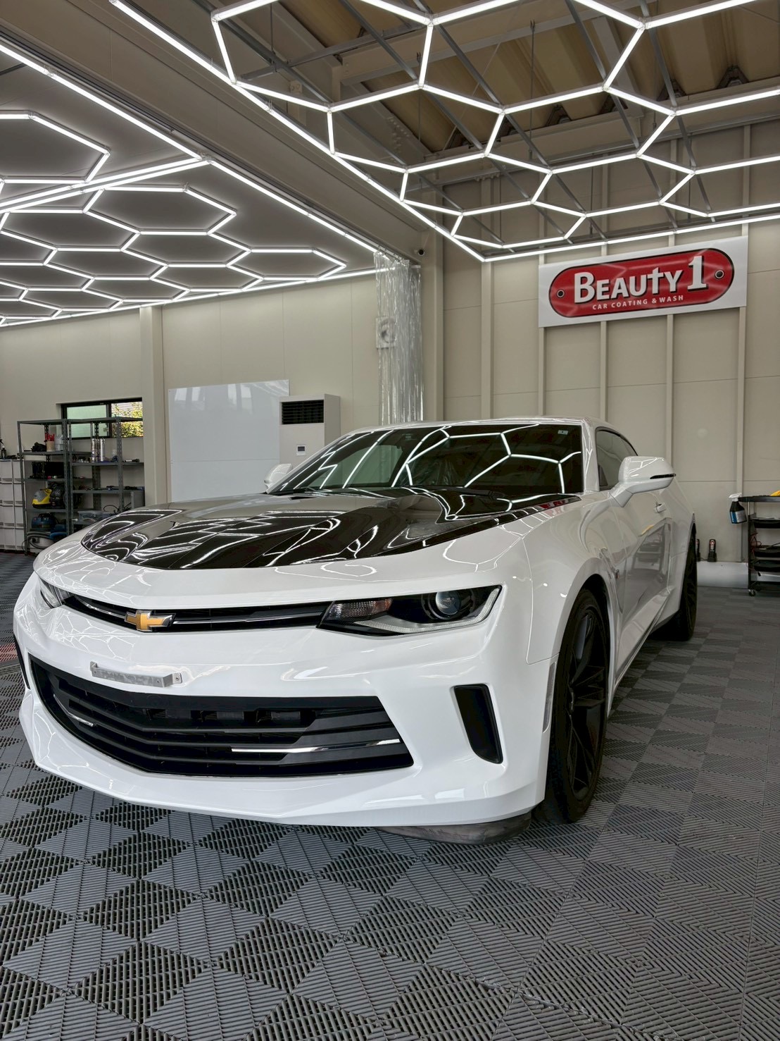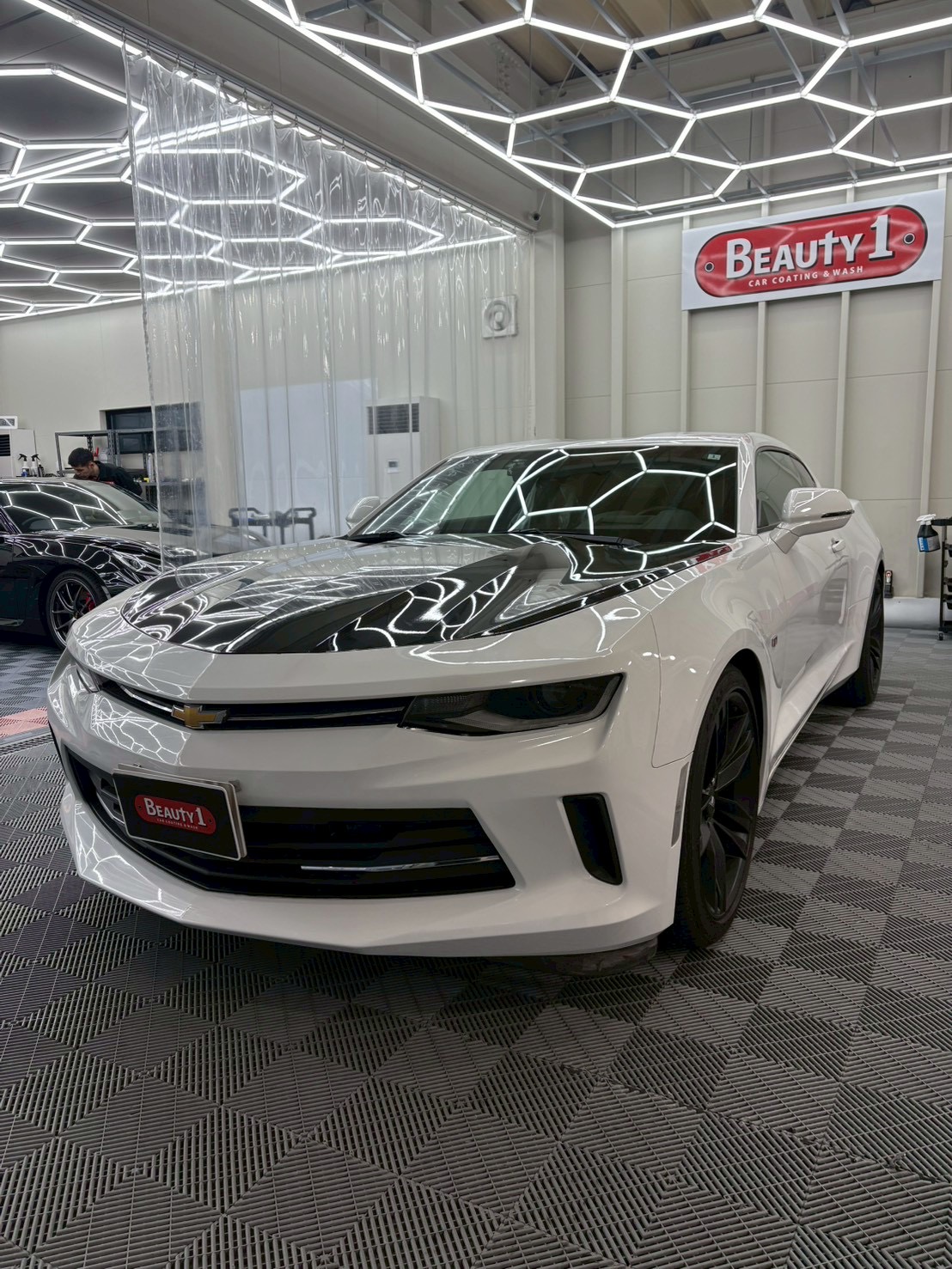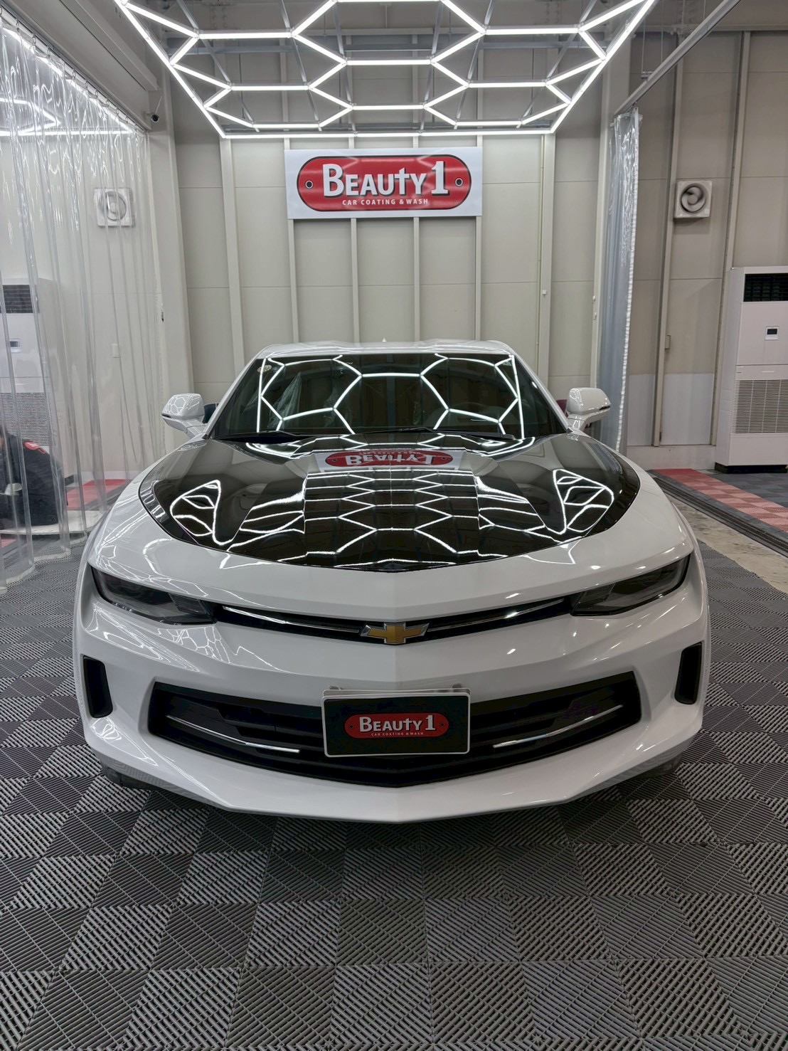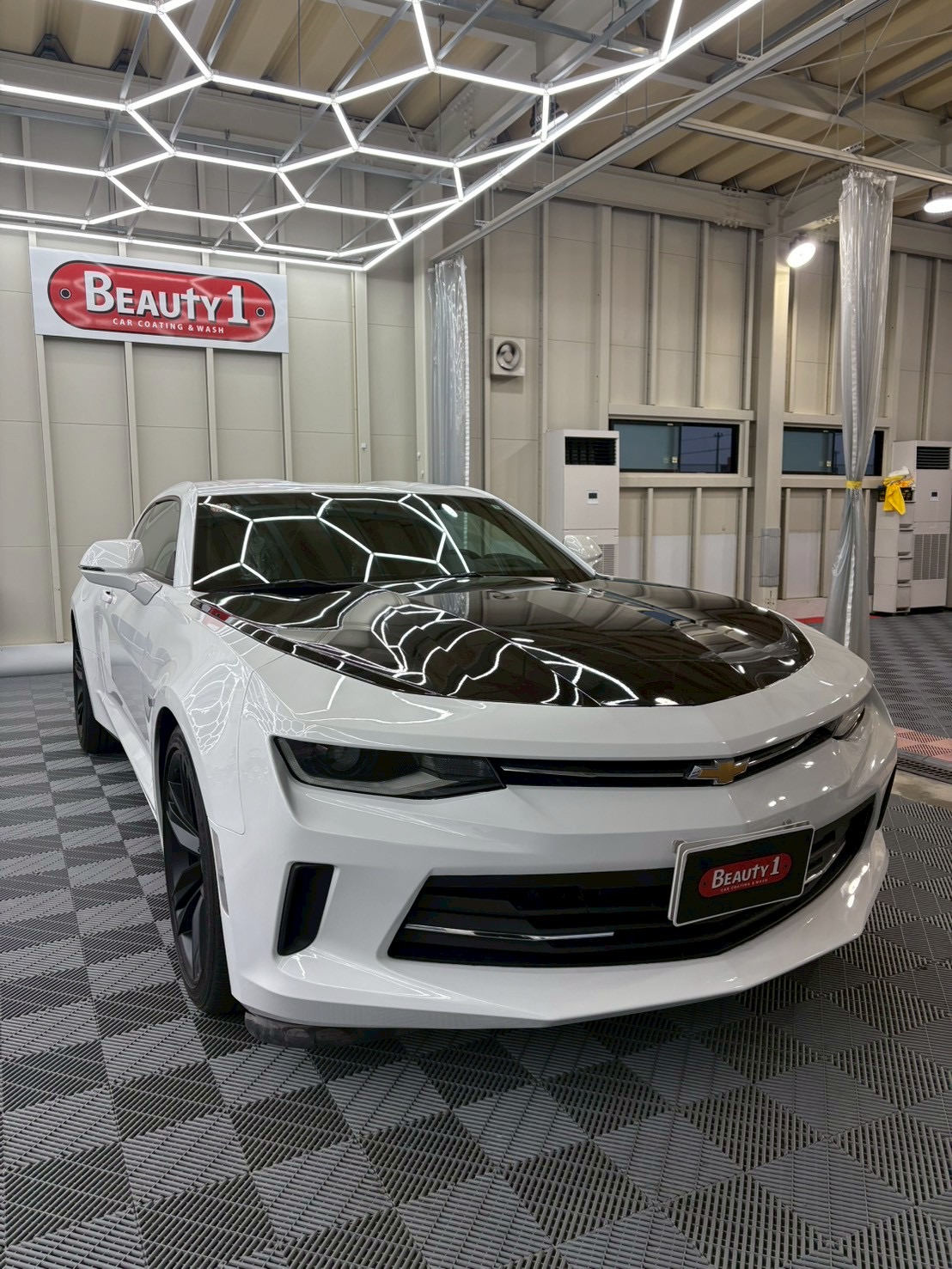 シボレー カマロにボディコーティングとウィンドウ・ホイール等が含まれたプレミアムプランを施工いたしました。