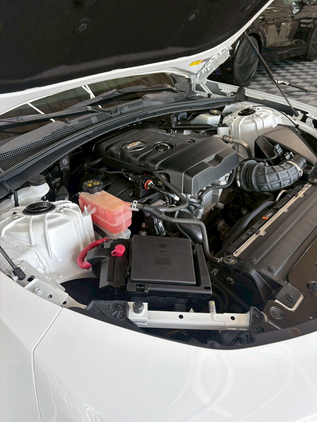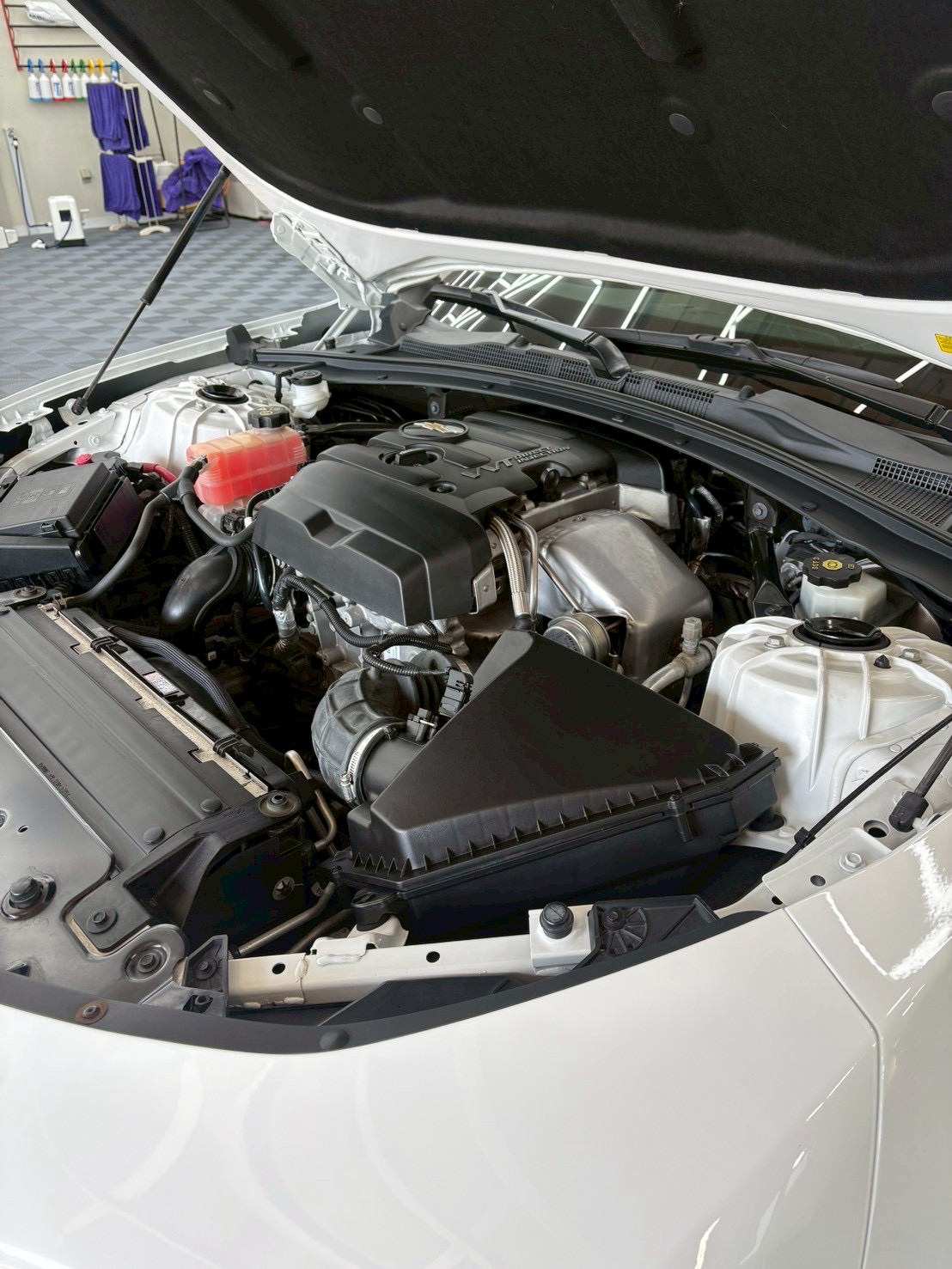 施工前の写真になります。ボンネットはラッピングされており、よりスポーティーに感じられる車両になっています。今回はボディコーティングに加えて、ウィンドウやホイール・ドア内側のステップ・エンジンルームなどの外装部全てをコーティングするプレミアムプランをご依頼頂きましたので、各部に合わせた下地作りを行なっていきます。